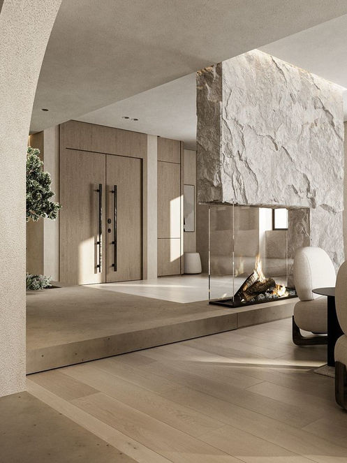 Wnętrze z klasą – miękka forma, światło i kamień.